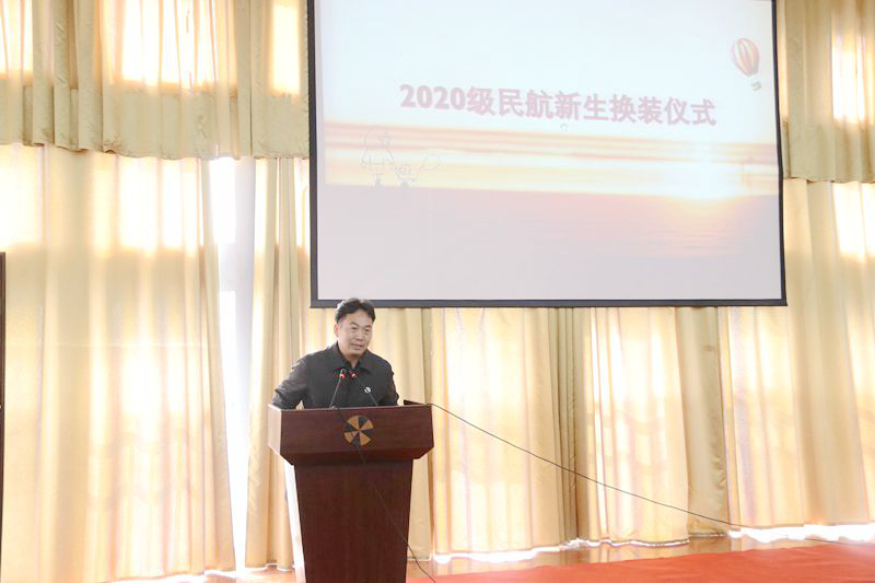 会上丁院长首先做了热情洋溢的致辞,对合作办学单位的到来表示欢迎,并结合专业特点对学生和任课教师提出要求:一是对学管人员而言,要以此次换装仪式为契机,在民航学生管理工作上要有新突破;二是对学生而言,要以这次换装仪式为契机,在民航班学生队伍建设上要有新形象;三是对教师而言,要以这次换装为契机,在民航班学生授课工作上要开创新局面。