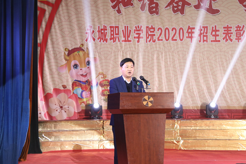 叶长青在文艺演出前作了讲话。他在讲话中指出,即将过去的一年,学院党委高举习近平新时代中国特色社会主义思想伟大旗帜,在市委、市政府的领导下,团结带领广大教职工同心同德,锐意进取,克难攻坚,阔步向前,一手抓疫情防控,一手抓事业发展,取得了双胜利,奏出了进入新时代永职发展的一曲高亢之歌。尤其是在院党委的统筹谋划、科学指导和全体教职工的共同努力下,招生工作取得了巨大成功,获得了张建慧市长的充分肯定,书写了学院史册上极为精彩的一页。