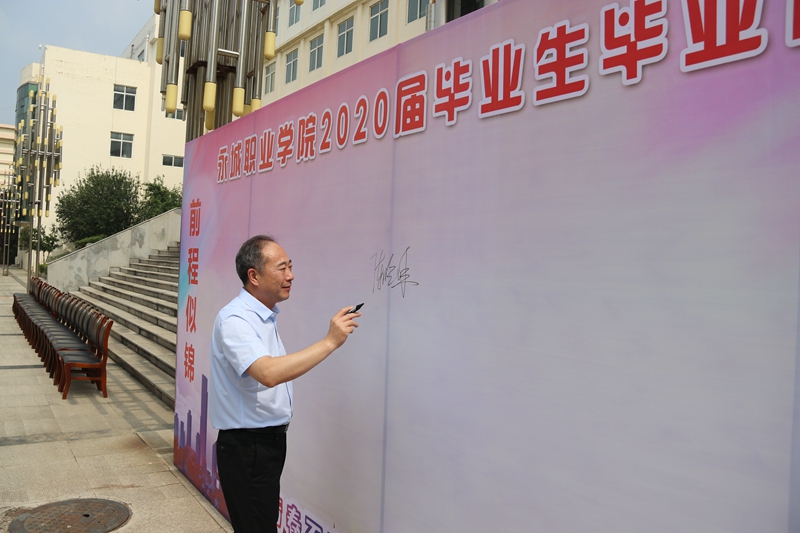 院长叶长青在外培训,也通过典礼向毕业生送来祝福:亲爱的同学们,因组织调训,错过了你们的毕业时刻,很遗憾,很不舍!请你们记住:永职永远是你们的家,有困难,找母校!更祝你们书写你们的精彩和幸福,永职因你们而骄傲!
