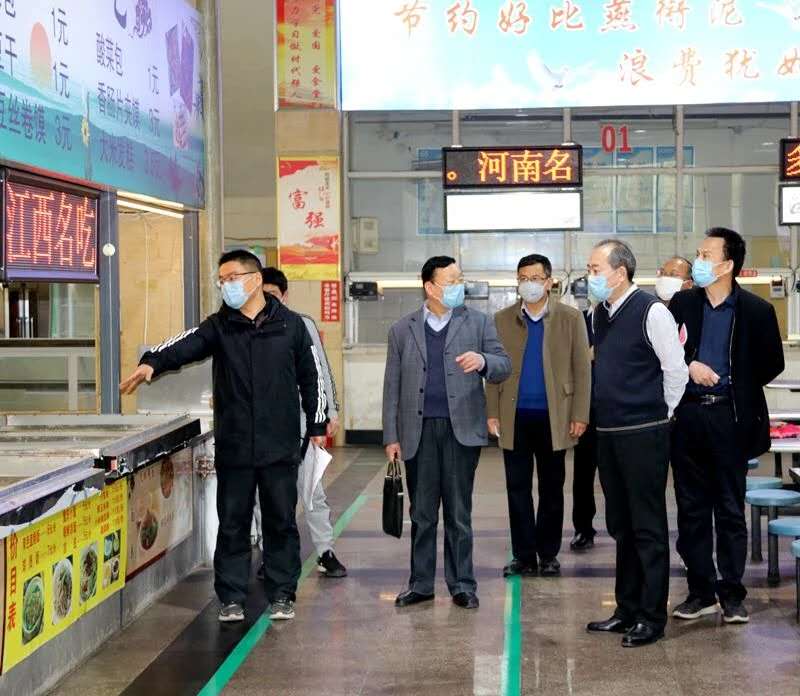 3月12日下午,学院主持全面工作的党委副书记陈晓峰,先后来到学院防疫物资储备室、隔离区、食堂、宿舍,认真查、仔细看、详细问,全面督查、排查学院防控工作落实、应急物资筹备、师生状况摸排、环境卫生整治及消毒情况等,再次督查部署疫情防控期间开学准备工作。学院党委委员、疫情防控领导小组主要成员、以及相关单位主要负责人参加了现场办公会。