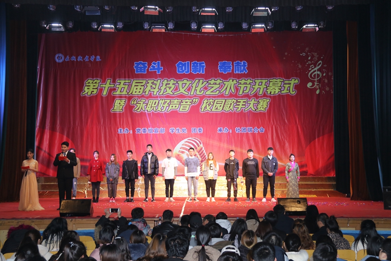 12月10日晚,由学院党委组宣部、学生处、团委主办,社团联合会承办的第十五届科技文化艺术节开幕式在礼堂隆重举行,学院党委委员、副院长丁超,学院党委委员、组宣部部长、人事处处长,学院党务、纪委工作负责人刘福奎出席活动,本届科技文化艺术节组委会成员、相关处室、系部负责同志和1000余名大学生参加了开幕式。开幕式由院团委副书记郭健波主持。