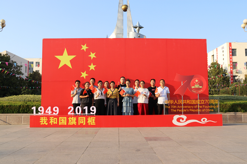在E楼广场,师生摆出了“中国”、“70”的造型,全体师生挥舞着国旗,齐声高唱《我和我的祖国》,活动吸引了广大学生围观,他们也都自发加入挥舞红旗的队伍。随后,大家纷纷在巨幅国旗前合影留念,纷纷表达对祖国的热爱之情。