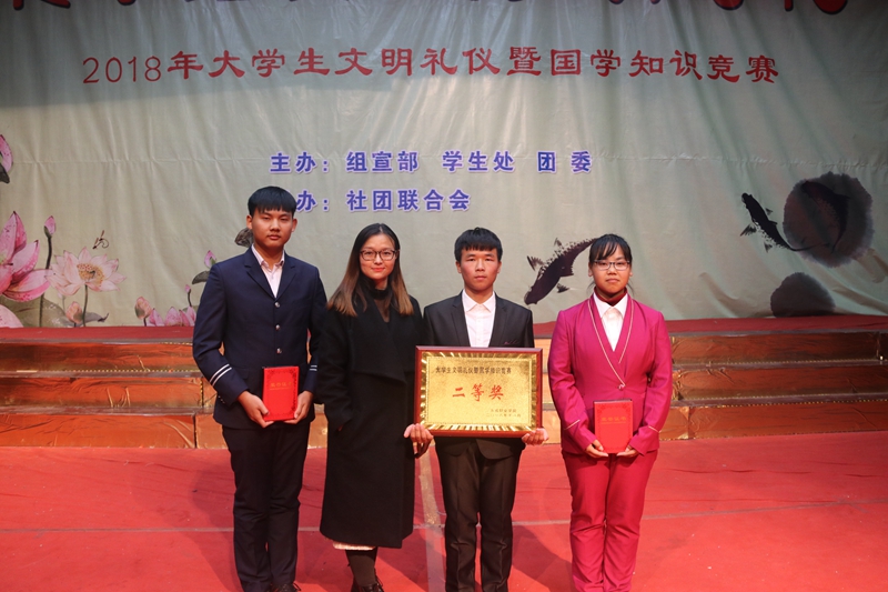 为传承中华民族“讲文明、重礼仪”的传统美德,全面提高我院大学生文化素质和文明礼仪修养,11月29日晚,学院党委组宣部、学生处、团委在学院礼堂联合举办了“传承经典筑梦新时代”文明礼仪暨国学知识竞赛。学院副院长丁超出席活动,各系部党支部书记、副书记、团总支部书记、辅导员、班主任和千余名大学生一起观看了比赛。