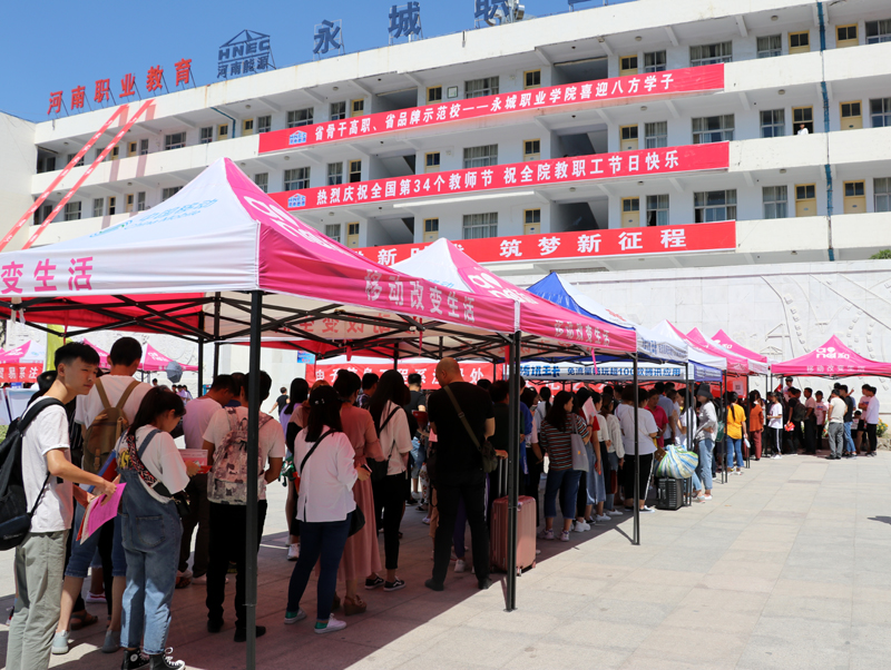 成立迎新生志愿服务团,用师哥师姐的热情、志愿者的爱心去迎接每一位新同学的到来,从报名处到注册处,再到寝室,处处涌动着他们忙碌的身影,拉箱子、搬被褥和铺床,忙得不亦乐乎。为确保每位家庭经济困难学生能够顺利入学,学院在广场东侧设立了新生“绿色通道”,耐心讲解申请国家贷款的条件及注意事项,提供办理国家助学贷款的相关资料,帮助办理国家助学贷款及入学注册手续。在商丘市火车站、汽车站,永城高铁站、徐州火车站分别设立新生接待点,专车接送新生及家长,为他们提供一站式服务。