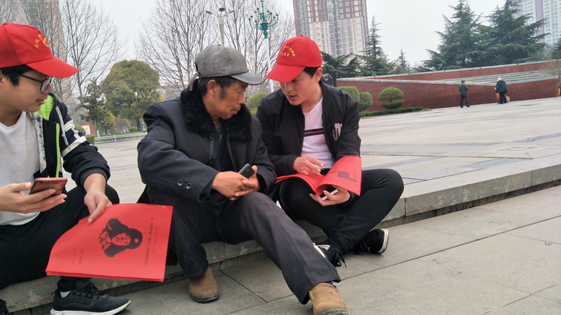 在永城市人民广场活动现场,同学们先向老人们讲述了志愿服务活动的基本情况及当下常用的手机软件功能,特别是微信等实用软件的使用,老人们表现出极高的热情。同学们除了手把手教老人使用智能手机,还向老人们发放了学生自己设计的老年人使用微信教程,以便老人更简洁明了地了解操作流程。