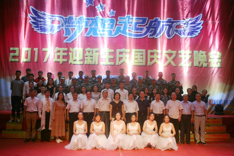 整场晚会分为走进永职、喜迎国庆、缤纷校园、梦想起航四个篇章。“来一个!来一个!”,新生们在教官的带领下进行拉歌比赛,活跃的气氛拉开了晚会的序幕。《走进永职梦想起航》的迎新视频回忆了接站、报到、注册、军训等一幅幅美好的瞬间,特别是军训环节的照片让同学们回想起了军训时的苦与乐、执着与艰辛。我院教师张显深情演唱的《美丽心情》唱出了新生及全体教职工的期望;来自校园广播站的朗诵《少年中国说》字字珠玑、振奋人心;来自教官们的军体拳表演整齐划一、刚劲有力、威武雄壮,展现了军人刚强、勇猛的精神毅力;来自社团联合会的话剧《妈妈的煎饼》感动了在场所有的观众;来自电子信息工程系的三名藏族同学为大家用藏语演唱了《飞翔》,让大家感受到了民族特色文化;我院教师常领演唱的《天路》点燃了同学们的激情,把晚会推向了高潮;晚会在全体演员共同演唱的《难忘今宵》歌声中落下了帷幕。之后,院领导到台上与全体演员亲切握手话以节日祝福并合影留念。