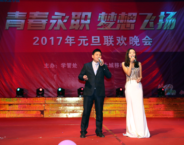 12月27日晚,由学管处举行的“青春永职,梦想飞扬”2017年元旦联欢晚会在学院礼堂隆重举行。学院在家领导曹志安、丁超、王立厚、朱少甫、荣向东、刘福奎、侯付禄以及各处室、系部负责同志和1000余名同学一同观看了晚会。