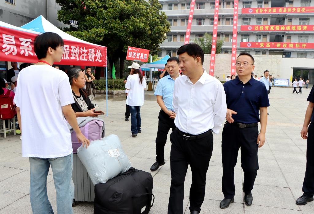 学院党委书记、院长叶长青高度重视迎新工作,带领相关部门负责人,走遍新生注册点、绿色通道、食堂、宿舍、超市、操场等各处,与志愿者、新生及家长亲切交流,仔细了解工作进展,询问报到情况,用细致的人文关怀,为新生报到筑牢坚实保障。同时,对迎新工作人员的辛勤付出表示感谢,并叮嘱大家要以高度的责任感和使命感,做好各项服务工作,让新生和家长满意。