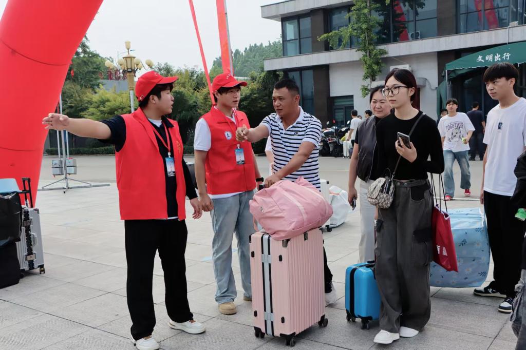 清晨,车站接站员和校园迎新志愿者们早早到位,他们身着统一服装,面带微笑,以饱满的热情迎接新同学的到来。从校门口到各系报到点,一路上都有志愿者们忙碌的身影。他们主动为新生搬运行李,耐心解答各种问题,引导新生顺利完成报到手续。“同学,你好!欢迎来到永城职业学院,我来帮你拿行李吧!”“这边请,报到流程是这样的……”一句句贴心的话语,一个个温暖的举动,让初来乍到的新生们感受到了家的温馨。
