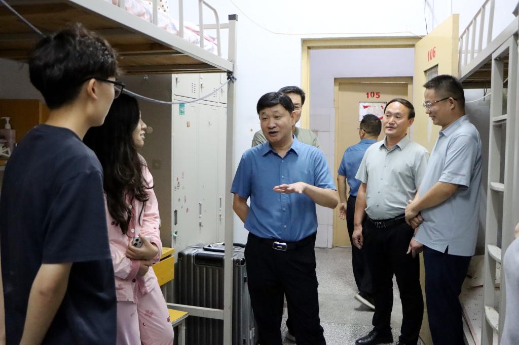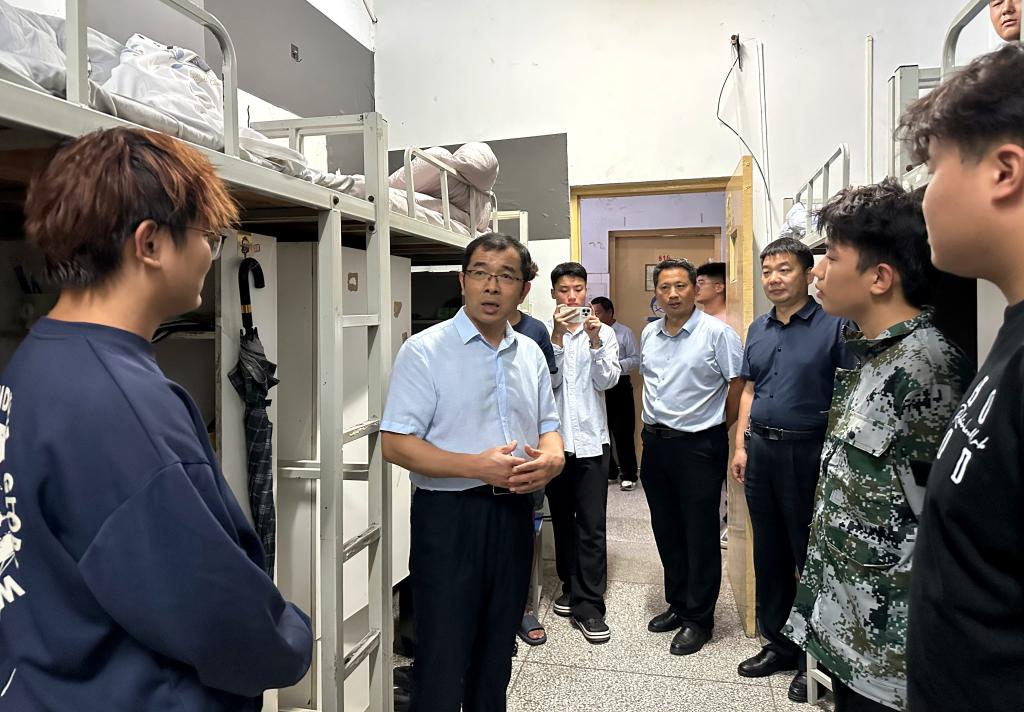 9月14日晚,夜幕初垂,学院党委书记、院长叶长青,院领导苗向锋、刘福奎、操龙坤分别带队,深入2025级新生宿舍,与刚步入校园的新同学面对面交流,将学院的温暖与关怀送到新生身边。