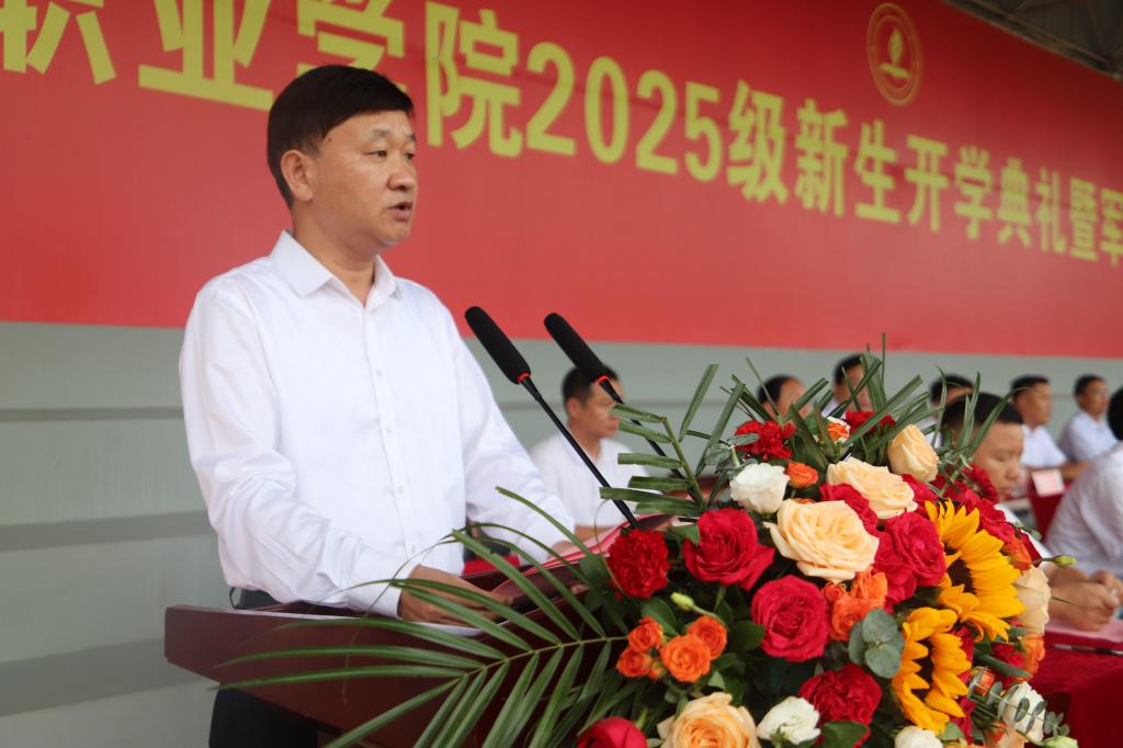 9月15日上午,我院运动场旌旗飘扬、青春涌动,2025级新生开学典礼暨军训动员大会在此隆重举行。3500余名新同学怀揣梦想与期待,正式开启大学生涯。学院党委书记、院长叶长青出席大会并致辞。党委委员、纪委书记、监察专员苗向锋主持,院领导刘福奎、操龙坤及学院各单位党政负责人、全体承训教官、新生辅导员等参加大会。